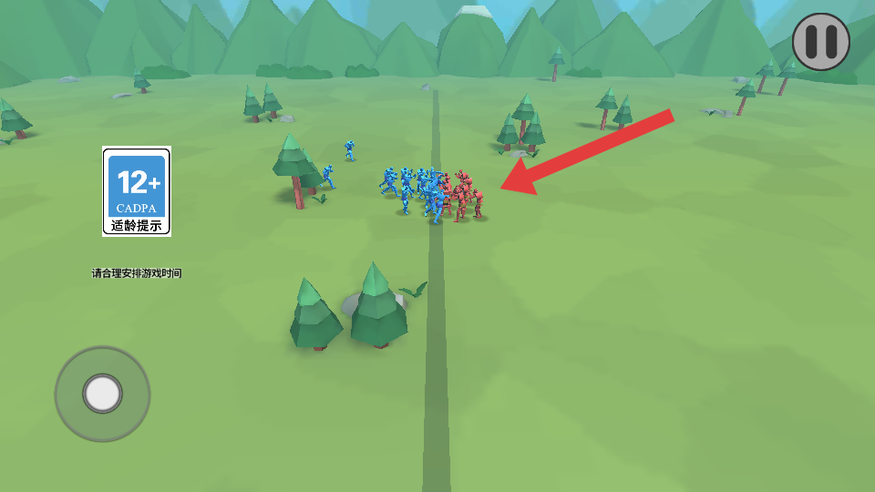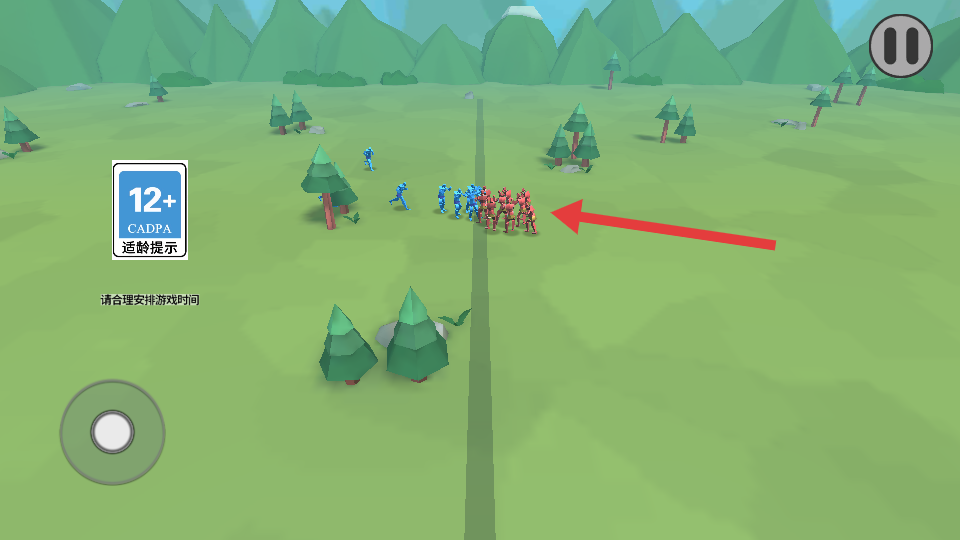 1、先觀察紅藍(lán)士兵的初始分布與數(shù)量,利用左下角操控按鈕,指揮己方士兵向敵方發(fā)起進(jìn)攻,初期可集中兵力突破敵方薄弱處。