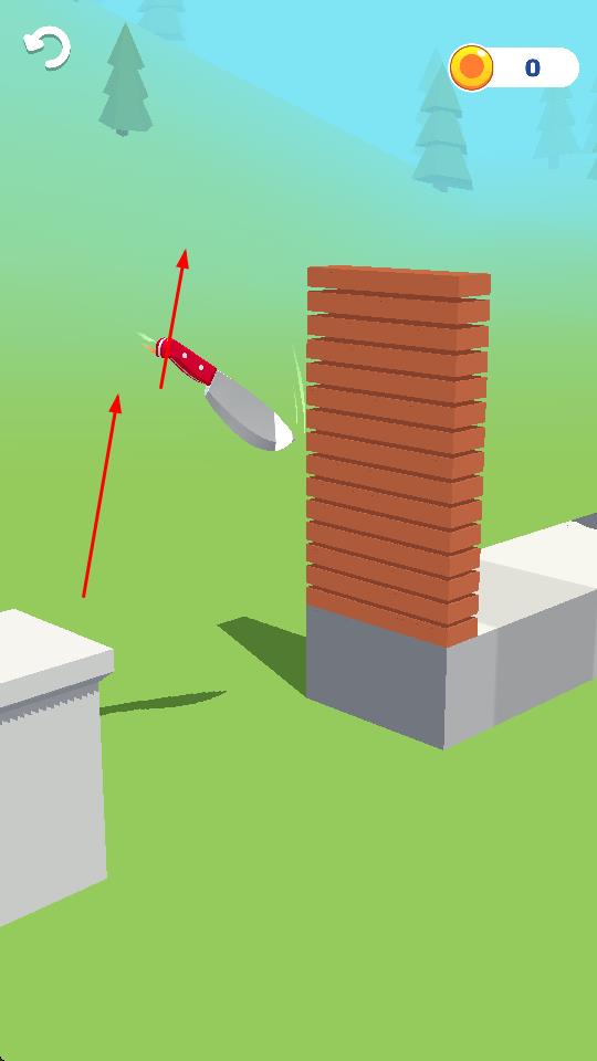 1、操控飛刀向目標(biāo)投擲,可擊打木塊堆等障礙物,開啟破壞挑戰(zhàn),為后續(xù)獲取金幣做準(zhǔn)備。