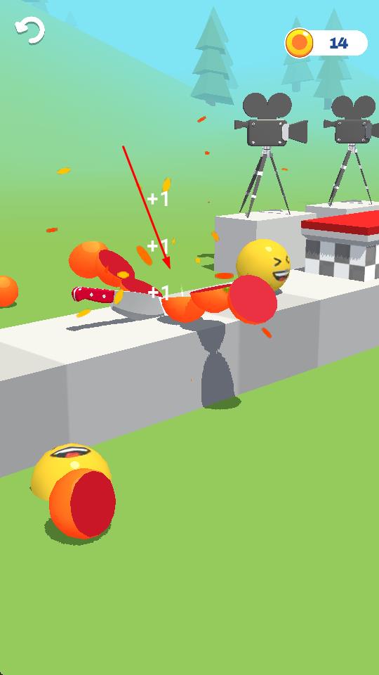1、單指點(diǎn)擊觸發(fā)切割:觀察屏幕上出現(xiàn)的物品,當(dāng)?shù)蹲右苿?dòng)至合適位置時(shí),用一根手指點(diǎn)擊屏幕,操控刀子向物品發(fā)起切割,點(diǎn)擊時(shí)機(jī)直接決定切割效果是否完美。