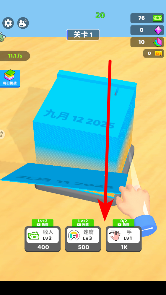 3、撕紙過(guò)程中或完成后,會(huì)獲得收入、速度、手等方面的提升選項(xiàng),根據(jù)需求選擇提升,增強(qiáng)后續(xù)撕紙的效率與體驗(yàn),不斷推進(jìn)進(jìn)程。