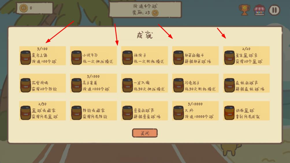 3、參與投籃挑戰(zhàn),完成投進(jìn)100個球玩一次挑戰(zhàn)模式等成就任務(wù),解鎖菜鳥上路小試牛刀等成就,提升游戲進(jìn)度。