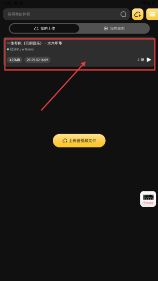 1、打開(kāi)應(yīng)用,點(diǎn)擊一生有你示例音樂(lè)-水木年華,進(jìn)入音樂(lè)編輯界面。