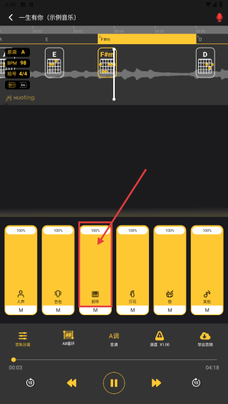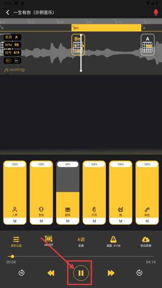 2、使用自動(dòng)識(shí)別:導(dǎo)入音頻后點(diǎn)擊界面上的“自動(dòng)識(shí)別”按鈕,軟件會(huì)開(kāi)始分析音頻,完成后在結(jié)果頁(yè)查看識(shí)別出的和弦、節(jié)拍、節(jié)奏等信息,輔助后續(xù)編輯。