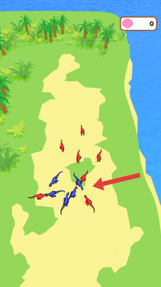3、戰(zhàn)斗間隙注意收集場(chǎng)景中的貝殼資源,這些資源可用于強(qiáng)化恐龍戰(zhàn)力或解鎖新的恐龍單位,助力推進(jìn)游戲。