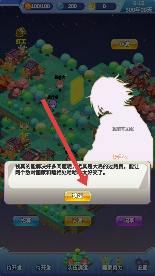2、遇到與陌生人的對話劇情時,仔細(xì)查看對話選項,根據(jù)自身經(jīng)營需求選擇合適回應(yīng),觸發(fā)額外資源或任務(wù)獎勵。