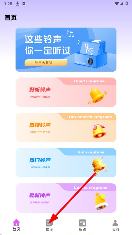 1、打開軟件,點擊底部導(dǎo)航欄的曲庫選項,進(jìn)入曲庫頁面。