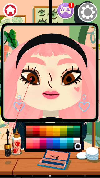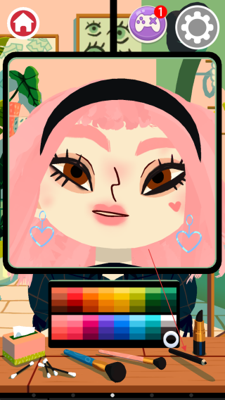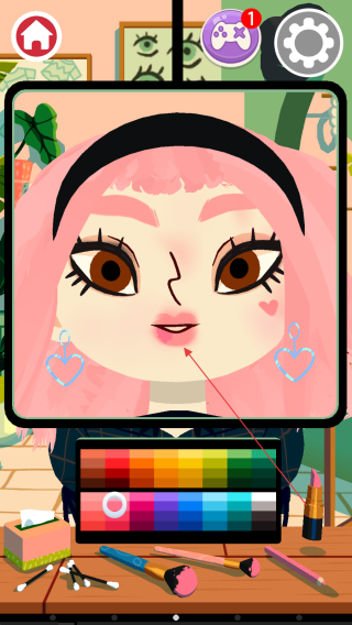 1、進(jìn)入游戲界面,看到角色臉部,下方是色彩豐富的調(diào)色板等化妝道具,點(diǎn)擊調(diào)色板選擇想要的顏色。