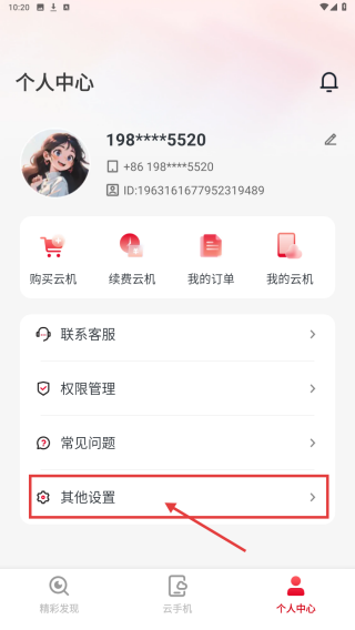 2、在個人中心,點擊其他設(shè)置選項,進入其他設(shè)置頁面。