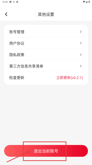 3、在其他設(shè)置頁面,點擊退出當前賬號按鈕,完成賬號退出操作。