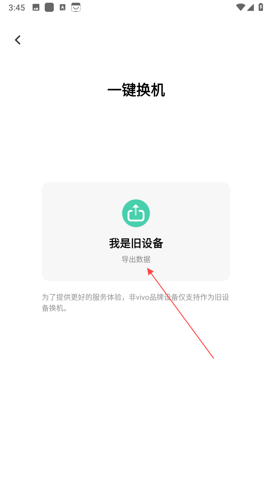2、在一鍵換機頁面,在舊設(shè)備上點擊我是舊設(shè)備選項,此時舊設(shè)備將準備導出數(shù)據(jù);在新設(shè)備上選擇我是新設(shè)備,進入掃描頁面。