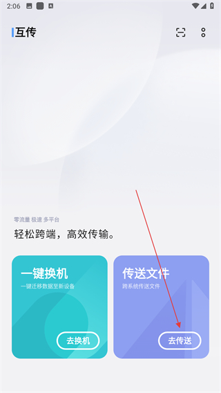 1、打開互傳APP,點擊界面中去傳送按鈕。
