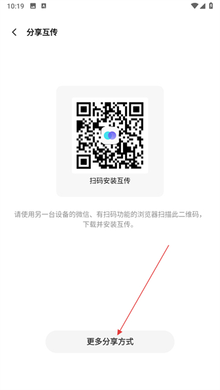 3、在分享互傳頁面里,點擊更多分享方式按鈕,彈出分享方式選擇框。