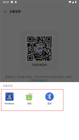 4、在分享方式中選擇目標渠道,即可將互傳軟件分享給其他設(shè)備。