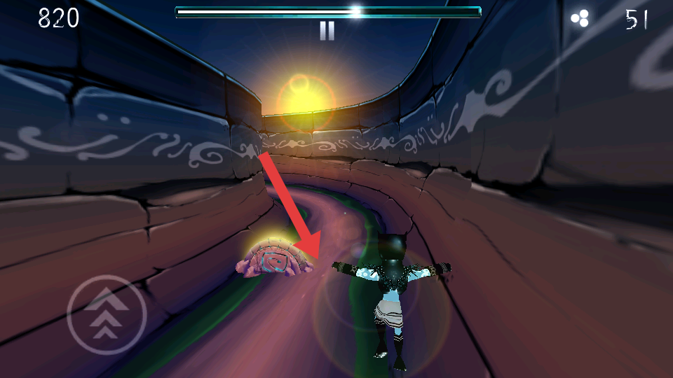 2、在賽道的奔跑時(shí),觀察畫面中的方向指引,通過滑動(dòng)屏幕控制角色轉(zhuǎn)向,避開賽道邊緣障礙。