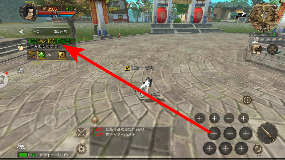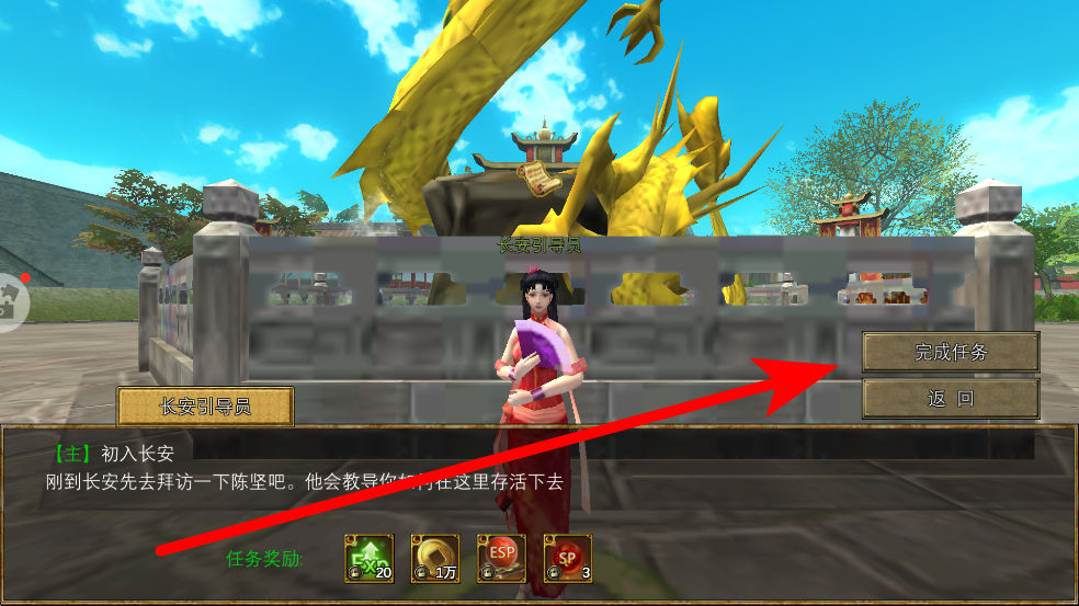 2、進入游戲場景后,會接到任務(wù),比如初入長安,按照任務(wù)提示,前往指定地點,與長安引導(dǎo)員等NPC互動,推進任務(wù)進程,熟悉游戲的任務(wù)系統(tǒng)。