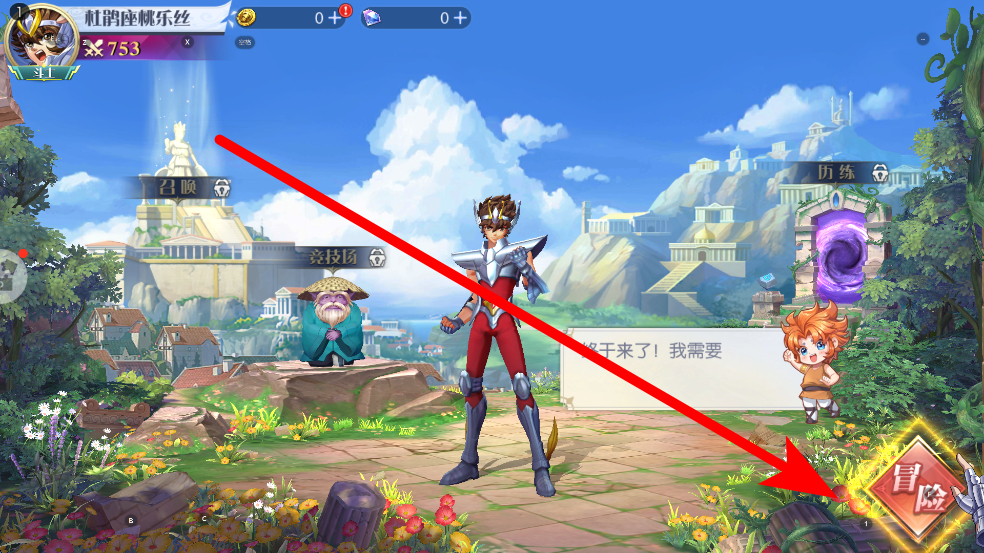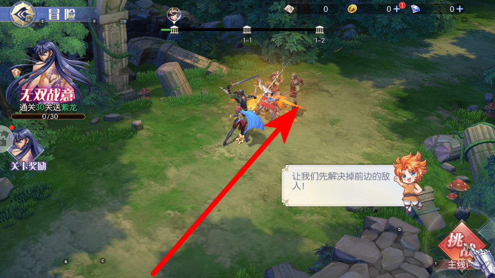 2、在場(chǎng)景中,找到冒險(xiǎn)按鈕并點(diǎn)擊,進(jìn)入冒險(xiǎn)場(chǎng)景,開啟冒險(xiǎn)進(jìn)程,在冒險(xiǎn)場(chǎng)景中,會(huì)遇到各類敵人,準(zhǔn)備好與它們展開戰(zhàn)斗。