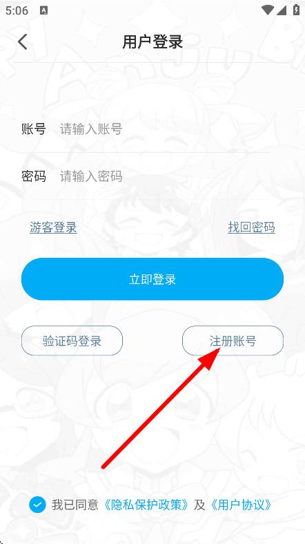 2、在用戶(hù)登錄界面,點(diǎn)擊注冊(cè)賬號(hào),進(jìn)入注冊(cè)賬號(hào)頁(yè)面。