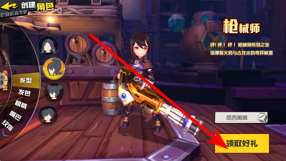 1、首先點(diǎn)擊進(jìn)入游戲,即可開啟旅程,進(jìn)入創(chuàng)建角色界面,可選擇槍械師職業(yè),還能對發(fā)型等外觀進(jìn)行調(diào)整,調(diào)整完畢點(diǎn)擊領(lǐng)取好禮,獲取初始獎勵。