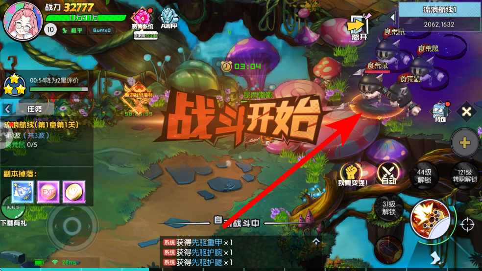 3、當(dāng)接取到流浪航線這類副本任務(wù),進(jìn)入副本場景后,會有戰(zhàn)斗開始提示,此時(shí)可運(yùn)用技能與敵人戰(zhàn)斗,戰(zhàn)斗過程中能獲得各類道具,助力自身戰(zhàn)力提升。