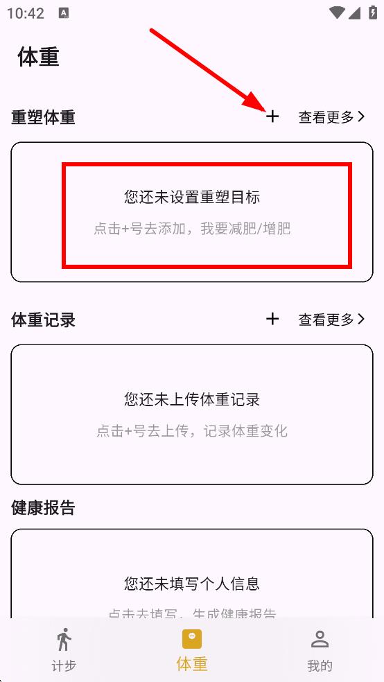 2、點擊重塑體重旁的+,進入體重重塑的個人信息填寫頁面。