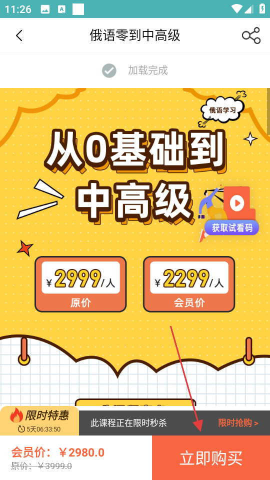 3、在課程詳情頁(yè)面,點(diǎn)擊立即購(gòu)買,進(jìn)入購(gòu)買確認(rèn)頁(yè)面。