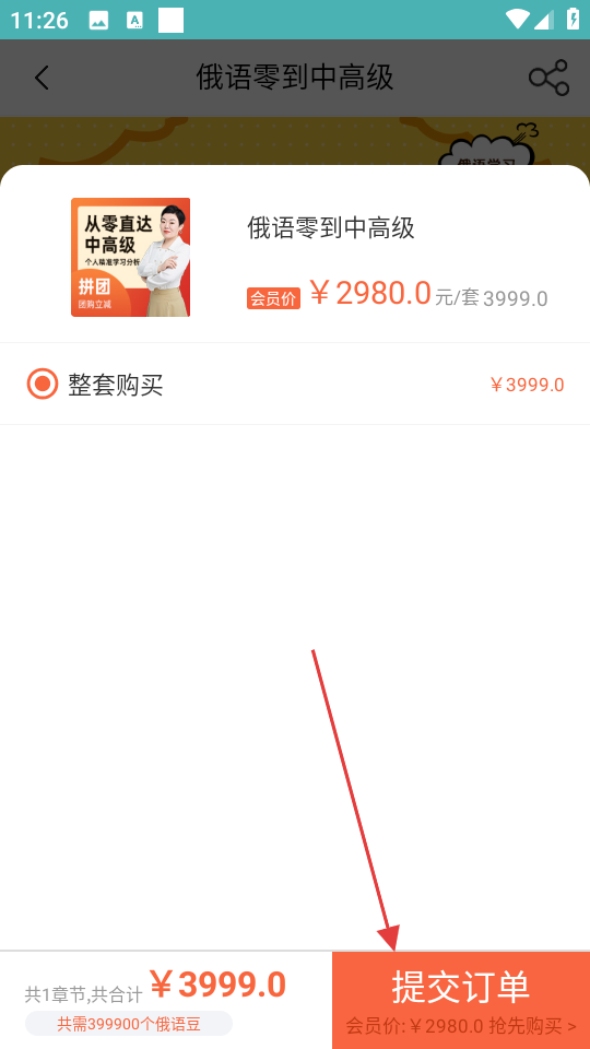 4、在購(gòu)買確認(rèn)頁(yè)面,點(diǎn)擊提交訂單,完成課程購(gòu)買。