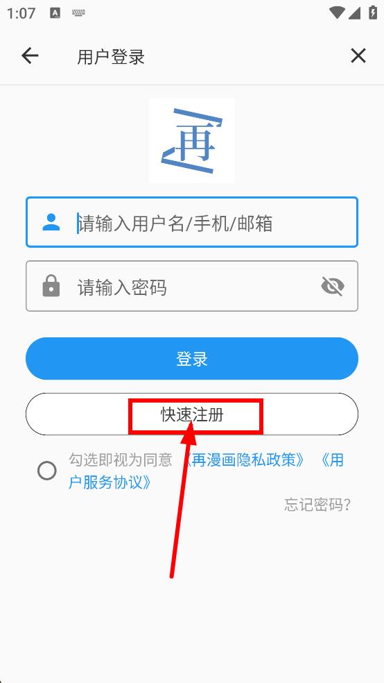 2、在登錄頁面,點擊快速注冊,進入注冊頁面。