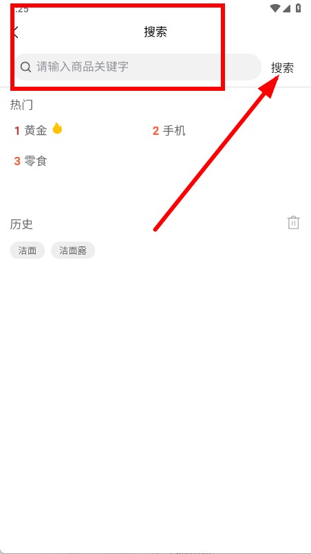 2、在搜索頁面的輸入框中輸入商品關(guān)鍵字,然后點擊搜索按鈕。