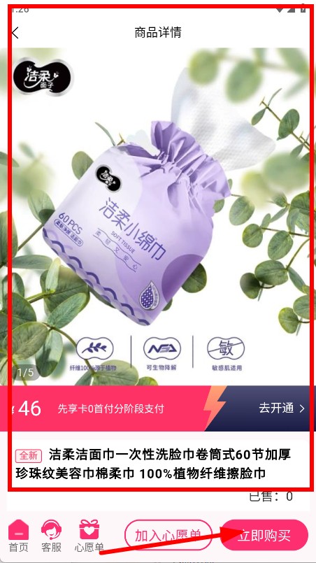 4、進入商品詳情頁后,點擊立即購買按鈕,即可進行購買操作。