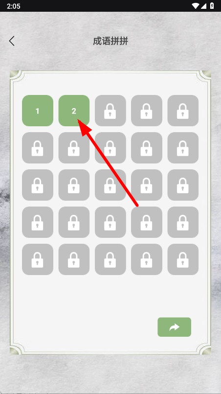 2、進入成語拼拼關卡頁,選擇可進入的關卡。