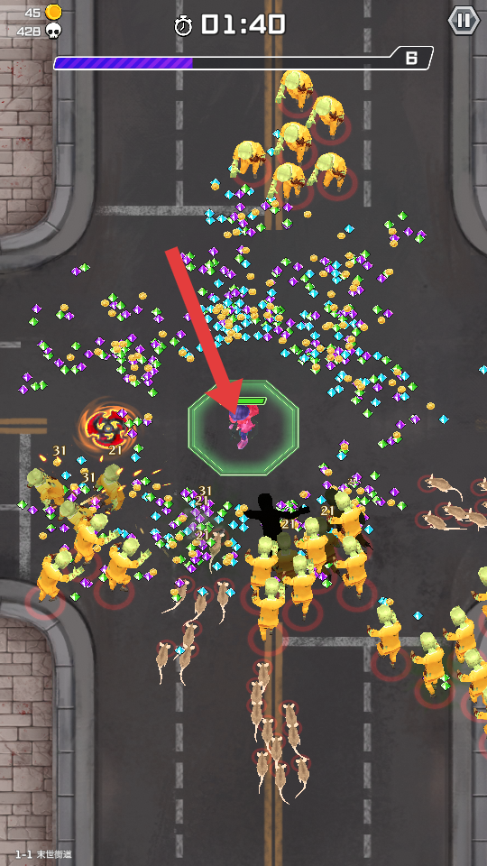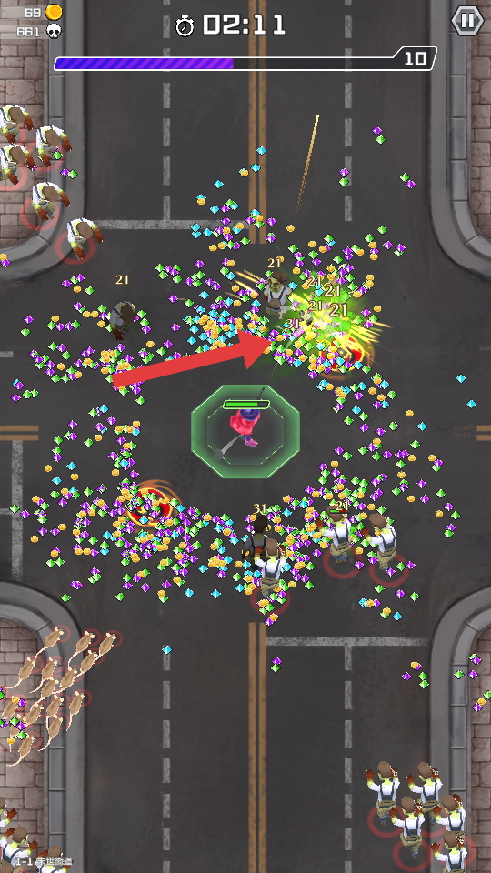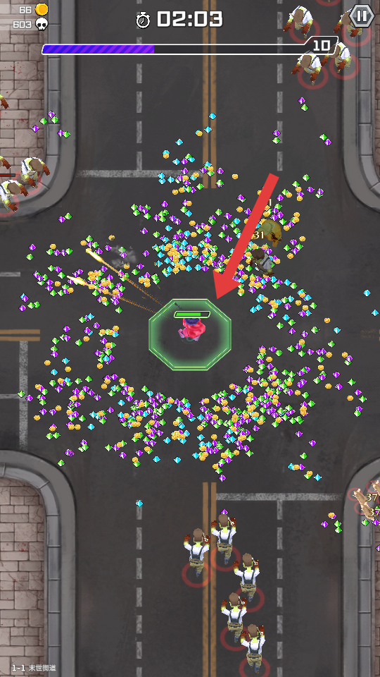 1、基礎(chǔ)戰(zhàn)斗啟動:點擊開始按鈕進(jìn)入游戲后,控制角色移動即可觸發(fā)自動攻擊,無需手動操作攻擊指令,專注于躲避僵尸圍堵與選擇戰(zhàn)斗路線,快速適應(yīng)游戲節(jié)奏。
