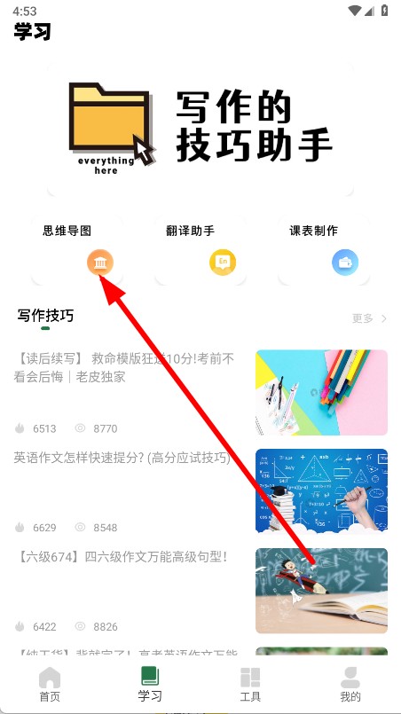 2、在學(xué)習(xí)頁面,點擊思維導(dǎo)圖功能入口。