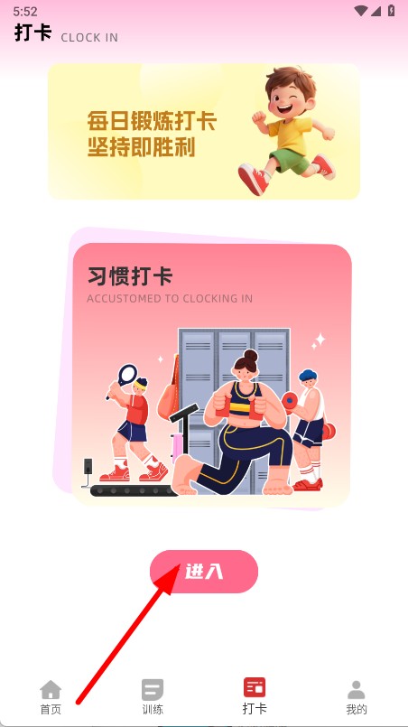 2、在打卡頁面,點擊習(xí)慣打卡板塊下方的進(jìn)入按鈕。