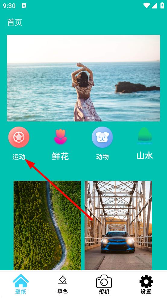 1、在首頁,點擊運動分類,進入運動類圖片頁面。