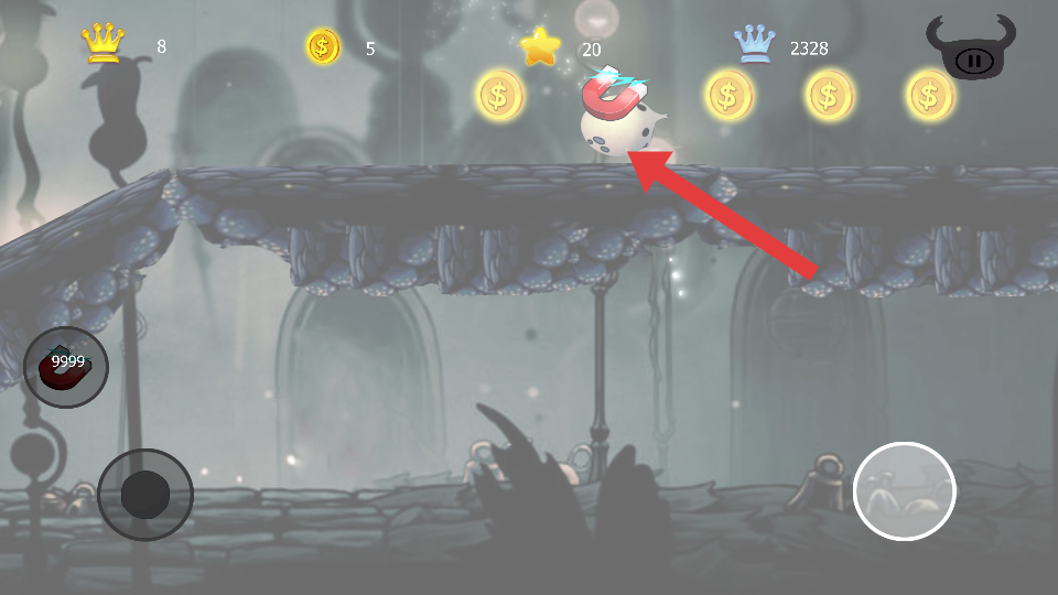 3、遇到帶有磁鐵圖標(biāo)的道具,及時(shí)拾取,磁鐵道具能自動(dòng)吸附周?chē)慕饚?,提升收集的效率?