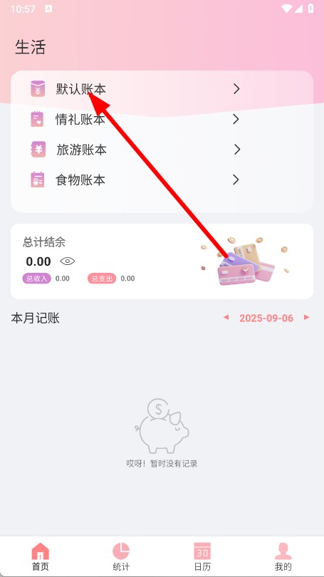 2、進(jìn)入APP首頁后,點(diǎn)擊默認(rèn)賬本選項(xiàng),進(jìn)入默認(rèn)賬本頁面。