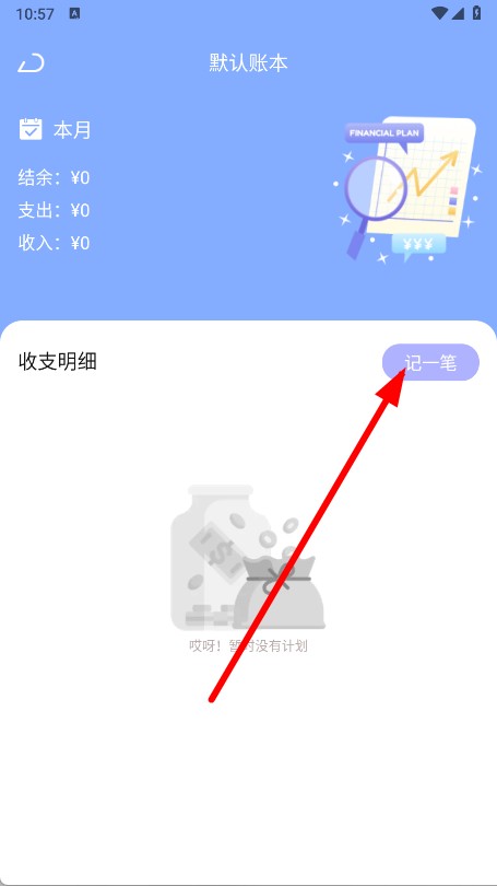 3、在默認(rèn)賬本頁面,點(diǎn)擊記一筆按鈕,進(jìn)入賬單記錄界面。