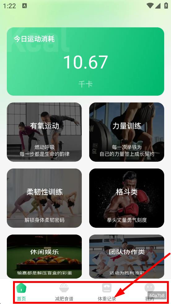 1、在首頁,點擊底部體重記錄,進入體重記錄頁面。