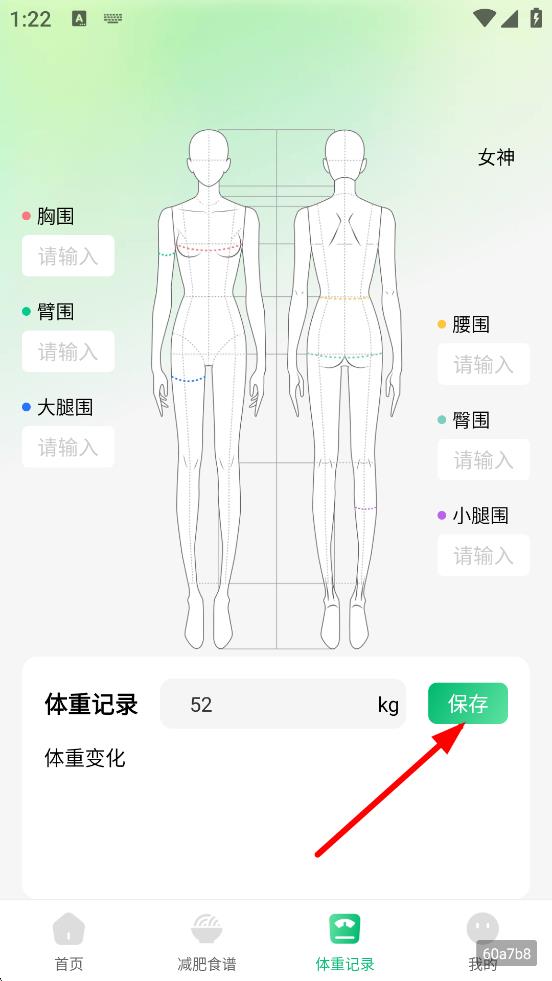 2、在體重記錄頁面,輸入體重后,點擊保存,記錄體重。