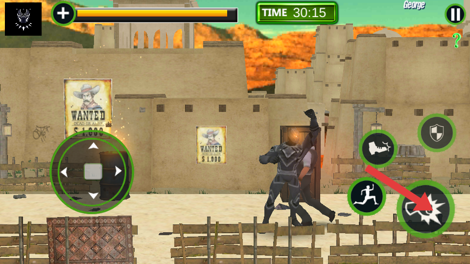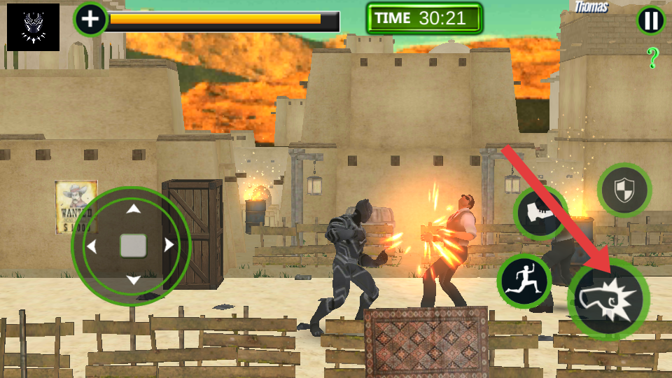 1、通過左側(cè)虛擬搖桿操控角色移動,在小鎮(zhèn)場景中,調(diào)整與敵人的距離,既可貼近敵人發(fā)起進攻,也能拉開距離規(guī)避。