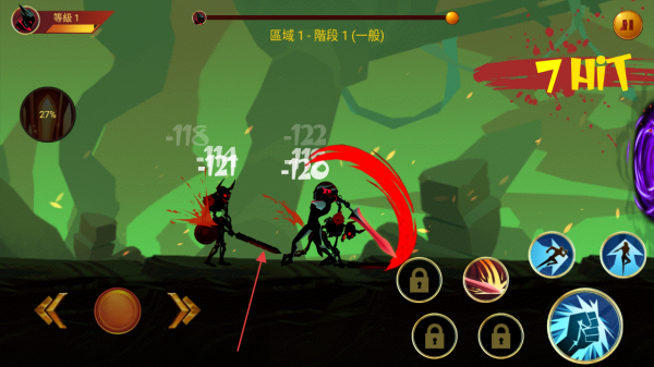 4、持續(xù)與敵人戰(zhàn)斗,連貫使用技能打出7HiT等連擊效果,擊敗更多敵人,提升等級,推進(jìn)到下一階段區(qū)域。