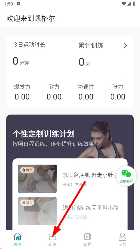 1、打開凱格爾訓練,點擊底部訓練選項。