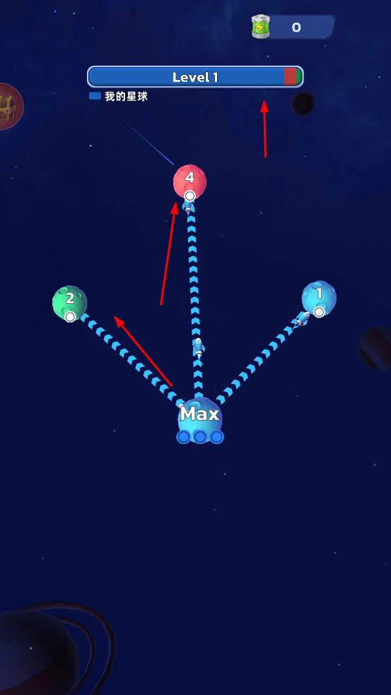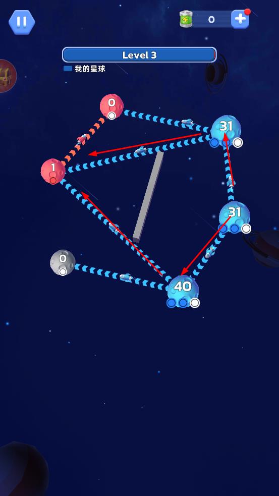 3、在復雜關卡中,規(guī)劃輸送線的連接路徑,借助不同數(shù)值星球的聯(lián)動,避開或突破障礙物,持續(xù)拓展我的星球的統(tǒng)治區(qū)域。