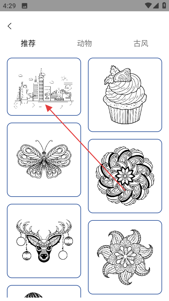 3、在填色圖案選擇頁面,選擇心儀的圖案,如推薦的城市。