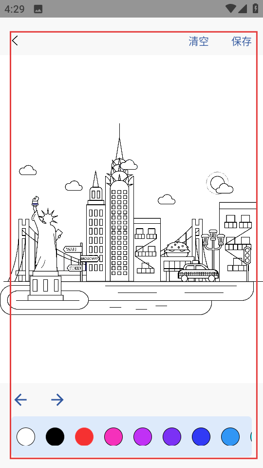 4、進入填色界面,使用下方顏色進行填色,填色后點擊保存保存作品。