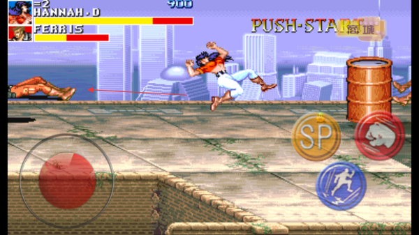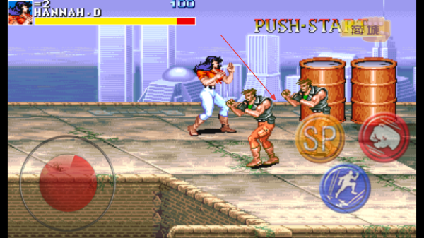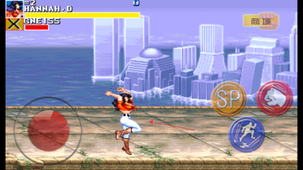 3、靈活的操作手感:操作系統(tǒng)延續(xù)街機(jī)的簡潔邏輯,通過虛擬按鍵即可實現(xiàn)拳腳、跳躍、技能釋放與槍械切換,按鍵響應(yīng)靈敏,連招操作流暢,無論是新手還是老玩家都能快速上手。