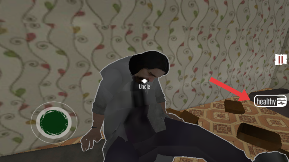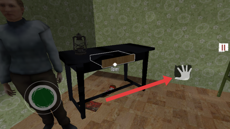3、關(guān)注界面右側(cè)healthy健康狀態(tài)標(biāo)識,在場景中尋找相關(guān)道具,碰到與抽屜之間的交換,點(diǎn)擊手掌查看。
