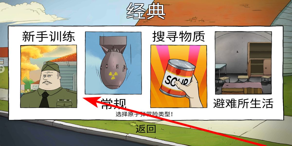 1、首先要選擇模式,在眾多模式里,挑選新手訓練模式,該模式能讓玩家了解核災難中搜尋和生存的信息,為后續(xù)的冒險做好知識與操作上的準備。