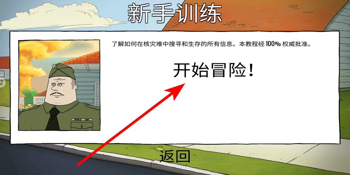 2、選好新手訓練模式后,點擊開始冒險,進入到核災難場景相關的新手訓練中,開啟學習核災難下生存技能的旅程,邁出核災生存的第一步。