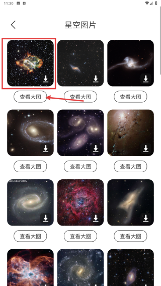 4、在星空圖片列表中,點(diǎn)擊喜歡的星系圖片,再點(diǎn)擊查看大圖按鈕,查看高清星系圖。